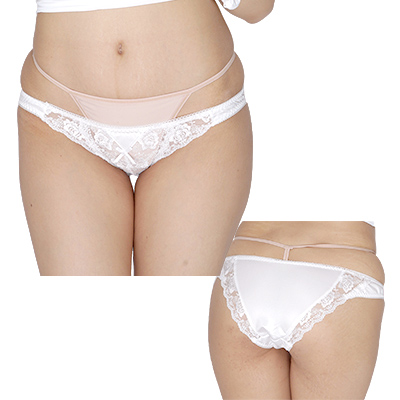 光沢柔らかポケット付きレースハーフバック ホワイト TW472WH